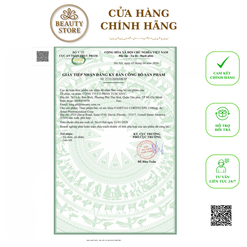 - Bạn có thể tìm mua Viên Uống Đông Trùng Hạ Thảo Famitaa Cordyceps 1500mg qua website: cuahanglamdep.com - Hoặc đến trực tiếp Cửa Hàng Làm Đẹp : 12 Duy Tân, Phường Cầu Kiệu , TP.HCM - Điện thoại: 0836.280.281 Hoặc 0898.280.281