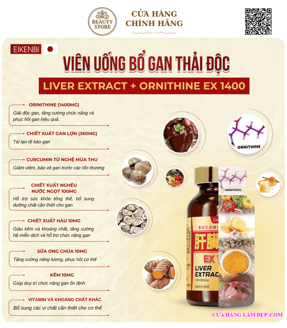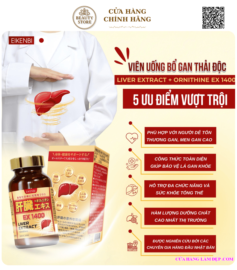 Giới Thiệu Viên Uống Bổ Gan Giải Độc Liver Extract +Ornithine Ex 1400 Eikenbi: