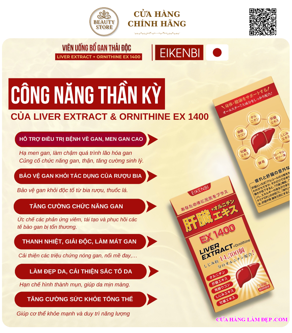 Công Dụng Viên Uống Bổ Gan Giải Độc Liver Extract +Ornithine Ex 1400 Eikenbi: