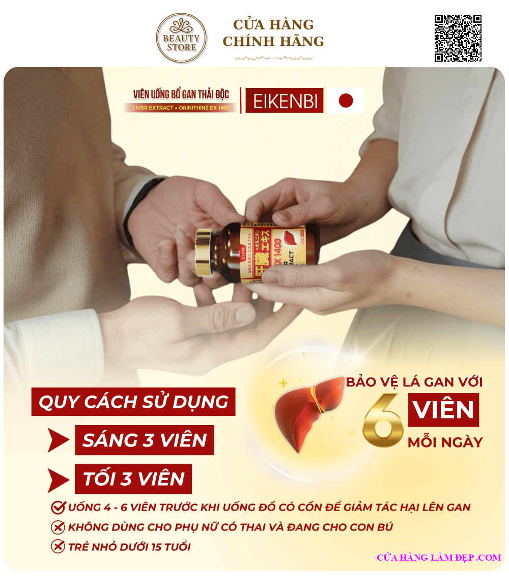 Hướng Dẫn Sử Dụng Viên Uống Bổ Gan Giải Độc Liver Extract +Ornithine Ex 1400 Eikenbi: