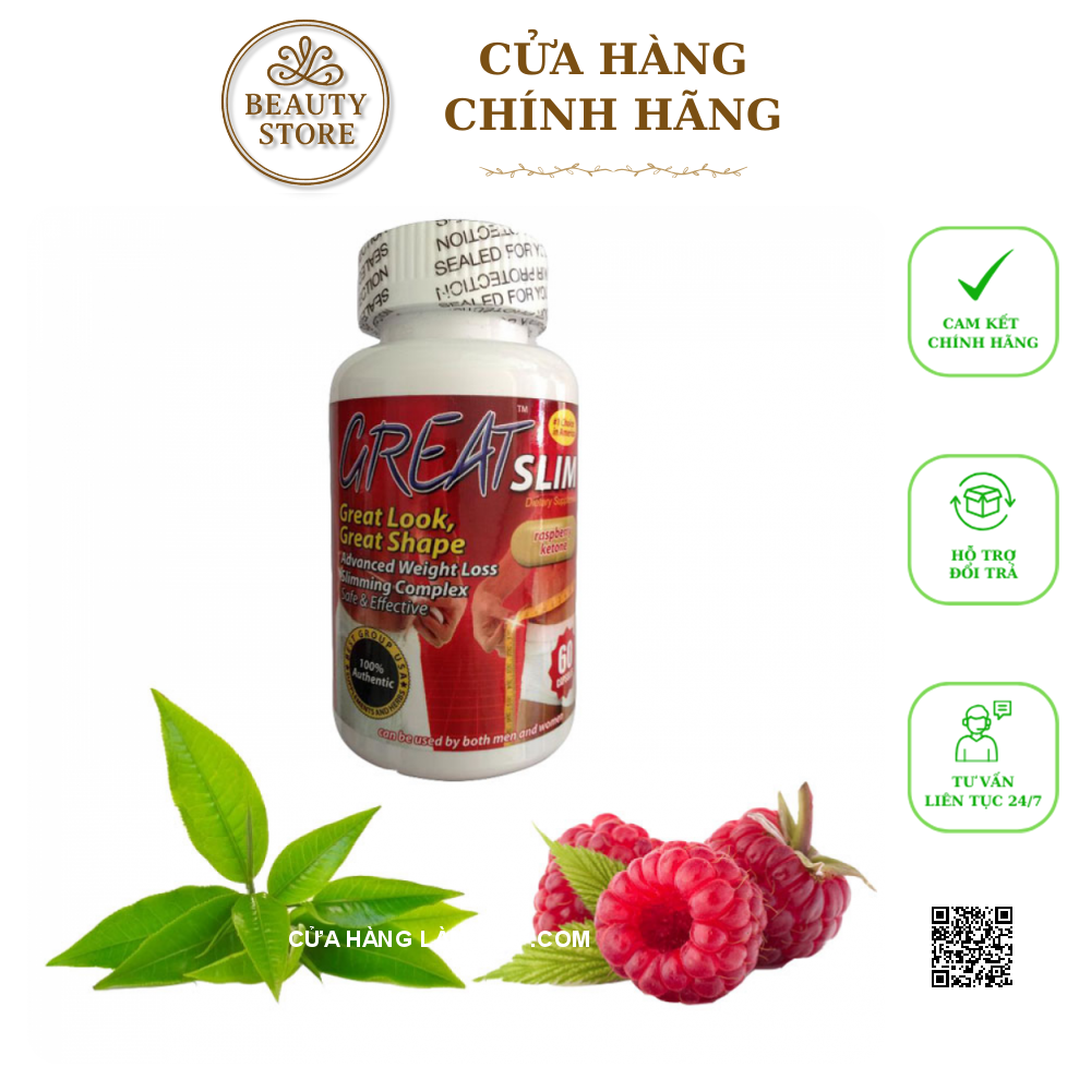 - Viên giảm cân Great Slim USA với chiết xuất hoàn toàn từ tự nhiên với thành phần chính chủ yếu từ lá trà xanh và quả mâm xôi sẽ giúp bạn kiểm soát được cơn đói của mình, ngăn ngừa và đào thải những lượng mỡ trong thức ăn hằng ngày.