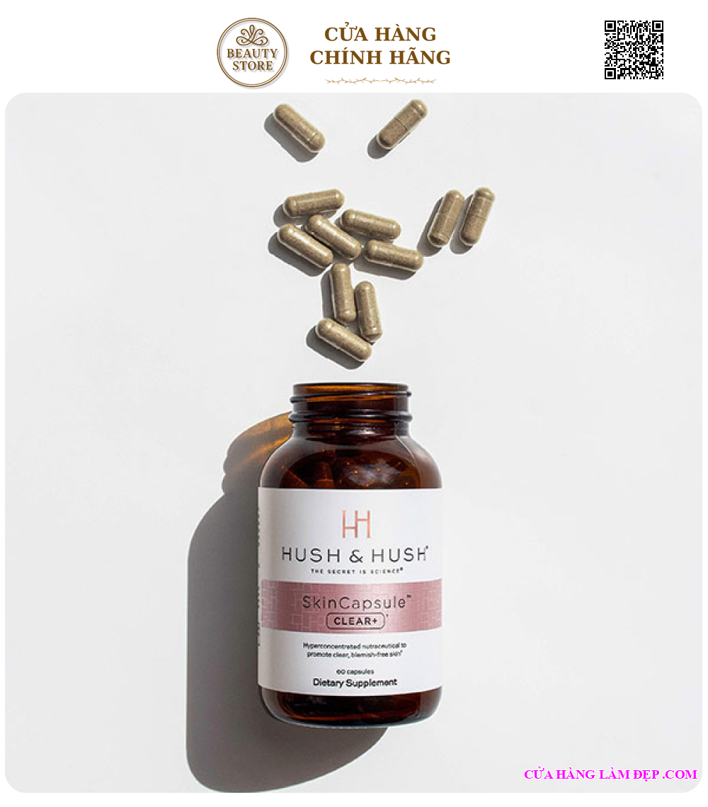 Viên Uống Giảm Mụn Hush & Hush Skin Capsule Clear+ Cao Cấp Từ Mỹ giúp giảm hết mụn và ngăn ngừa tái phát nhờ viên uống đặc Giảm Mụn tác động từ bên trong như cơ thể nóng, chứa độc tố, nội tiết không ổn định. Không như các loại kem và tây chỉ kháng sinh tiêu viêm không giảm nguyên nhân gây mụn nên mụn bớt một thời gian và bị lại.