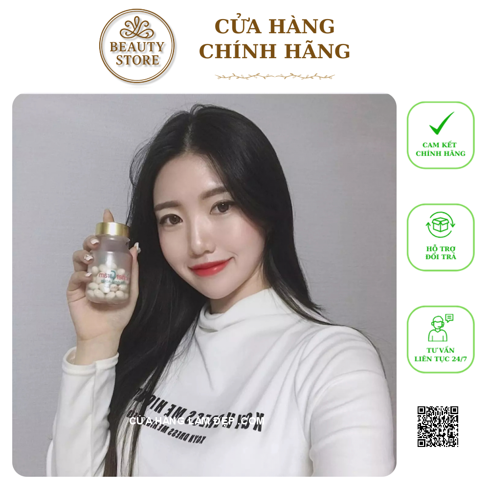 - Giúp làm mờ vết nám, tàn nhang - Đem đến cho bạn một làn da trắng mịn và hồng hào, căng mịn như da em bé - Đặc biệt viên uống còn giúp cải thiện nếp nhăn trên khuôn mặt bạn, giúp trẻ hóa làn da cũng như tăng độ đàn hồi cho da - Cung cấp nước cho da, thu nhỏ lỗ chân lông - Hơn nữa em ấy còn giúp đôi môi chúng ra luôn hồng hào Khử mùi hôi trên cơ thể, cân bằng nội tiết tố, ngăn chặn sự rụng tóc - Cung cấp đầy đủ các loại vitamin cần thiết cho da
