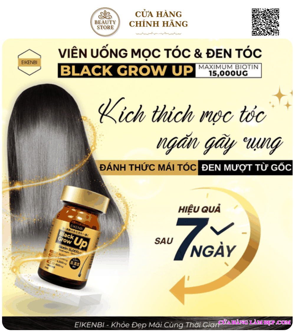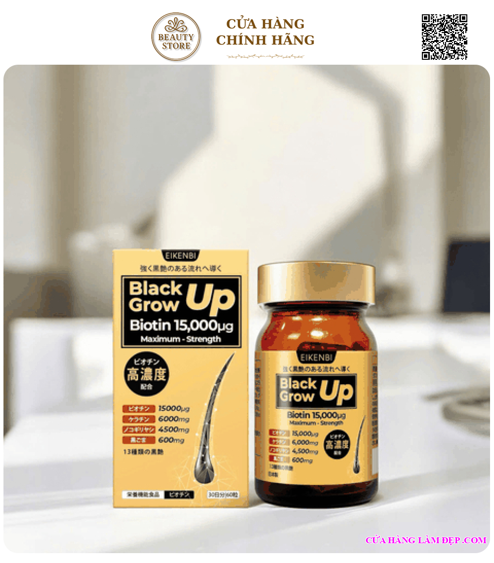 Viên Uống Mọc Tóc & Đen Tóc Black Grow Up Maximum Biotin 15,000µg Eikenbi được khách hàng của Hệ Thống Cửa Hàng Làm Đẹp đánh giá cao.