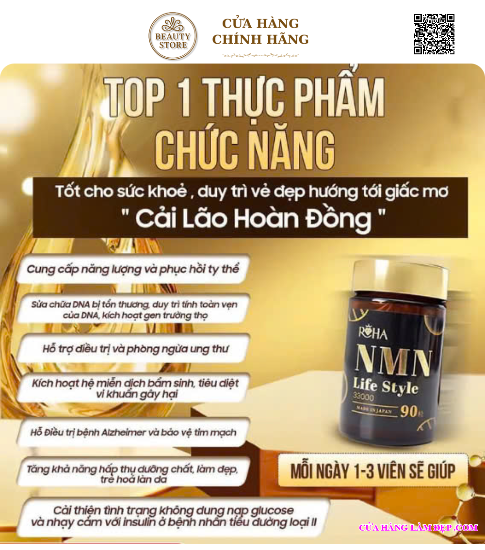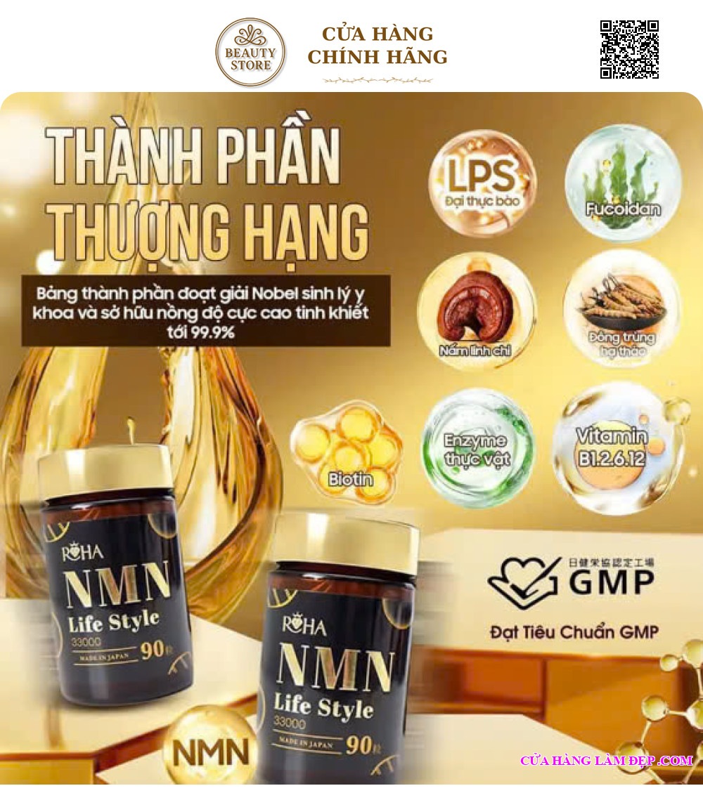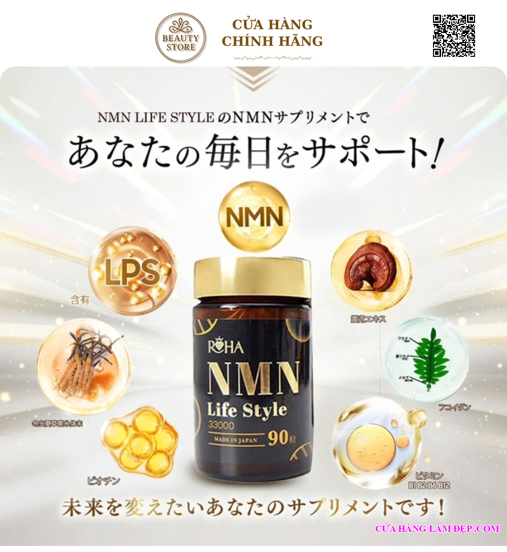 Viên Uống NMN Life Style 33000 Nhật Bản với hàm lượng NMN cực cao 800mg/1 ngày, kết hợp cùng các hoạt chất quý như LPS đại thực bào, Fucoidan, Biotin, nấm linh chi, đông trùng hạ thảo, Enzyme thực vật, L-Arg, L-Citrulline, canxi,… với khả năng thẩm thấu nhanh vào cơ thể, sản phẩm đột phá mang đến sự thay đổi toàn diện từ trong ra ngoài, cung cấp năng lượng và giúp phục hồi ty thể, hỗ trợ ngăn ngừa u.ng thư, với khả năng tái tạo tăng sinh tế bào trẻ hóa sinh học giúp duy trì tuổi xuân, ngăn ngừa lão hóa, làm đẹp da, từ đó giúp bạn sở hữu chìa khóa vàng “trẻ lâu – khỏe lâu” của người Nhật.