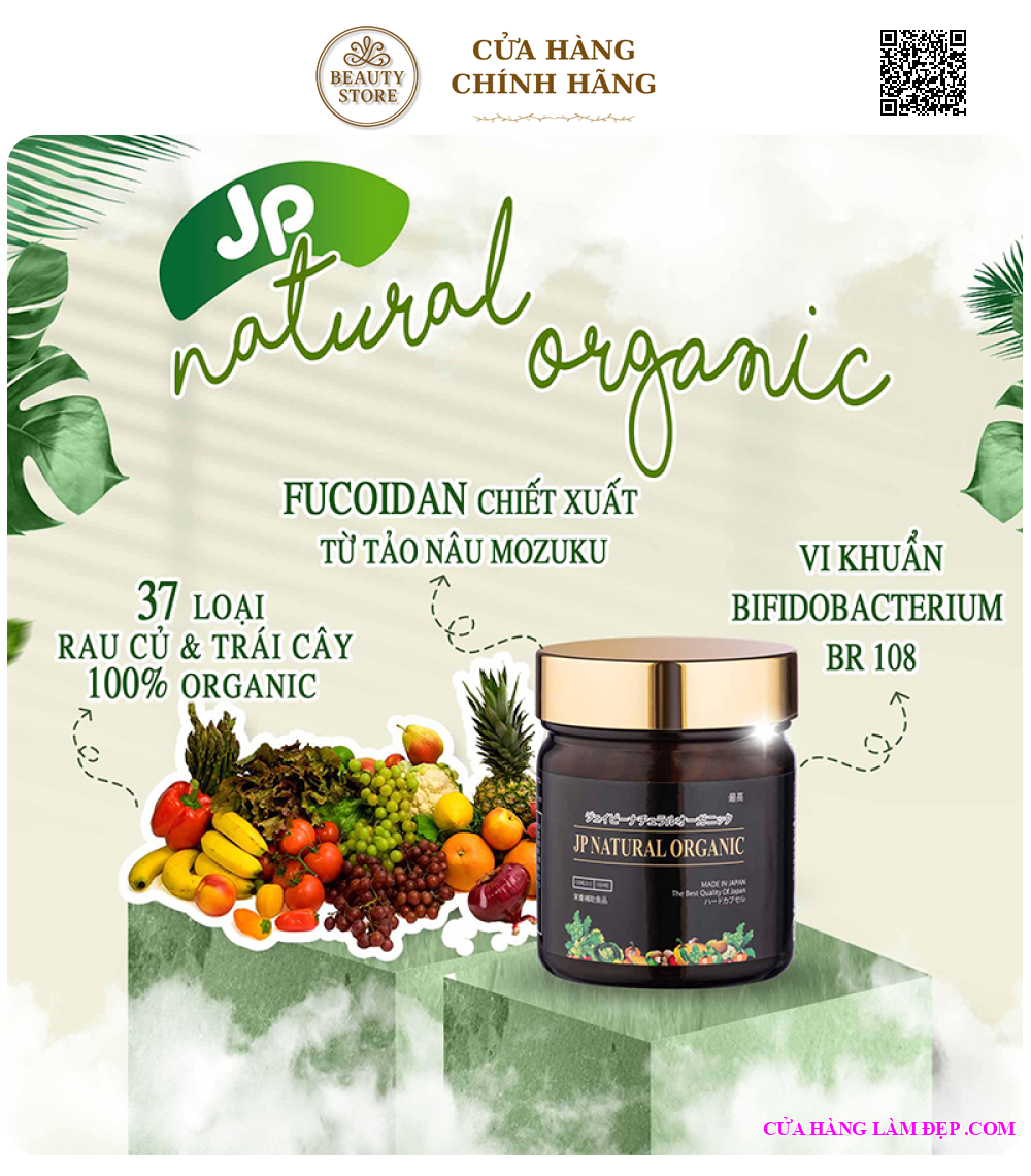 Tự hào là sản phẩm số 1 tại Nhật Bản, Viên Uống Rau Củ Bổ Sung Chất Xơ JP Natural Organic không những được giới chuyên môn đánh giá cao bởi thành phần các chất phong phú từ nguồn nguyên liệu rau củ sạch và an toàn tuyệt đối mà còn được kết hợp cùng FUCOIDAN quý hiếm, chiết xuất từ tảo nâu Mozuku ở vùng biển Okinawa là một trong những nơi được đánh giá sạch nhất thế giới, tảo xoắn, lợi khuẩn sống trong đại tràng Bifidobacterium BR 108... và các chất khác giúp hỗ trợ tăng cường hoạt động của hệ tiêu hóa, cân bằng dinh dưỡng một cách tiện lợi, nhanh chóng và hiệu quả.