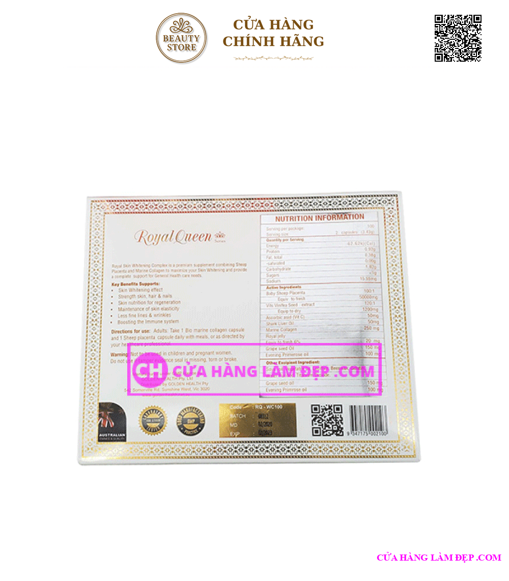 Sản Phẩm Viên Uống Royal Queen Whitening Skin Complex Golden Health có xuất xứ từ Úc.