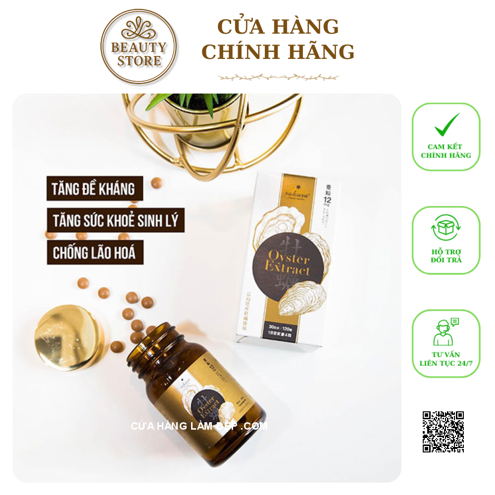 Viên uống tăng cường sức khỏe Sakura Oyster Extract tinh chất hàu tươi từ vùng biển sâu Miyagi Nhật Bản sử dụng công nghệ Proton chuẩn Sashimi giữ lại tất cả những chất bổ dưỡng tinh khiết nhất cần thiết cho cơ thể, hỗ trợ cải thiện sức khỏe sinh lý và tăng cường sức khỏe.