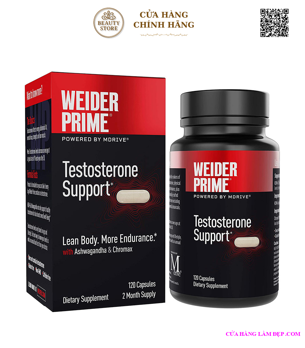 Khi chế độ dinh dưỡng hàng ngày không thể đáp ứng đủ lượng Testosterone cho cơ thể, viên uống Weider Prime Testosterone Support là giải pháp hiệu quả được các chuyên gia nghiên cứu giúp nam giới cải thiện lượng Testosterone bị thiếu hụt, tăng cường sức khỏe toàn thân, giúp nam giới không phải đối mặt với nhiều bệnh lý nguy hiểm về tim mạch, huyết áp.