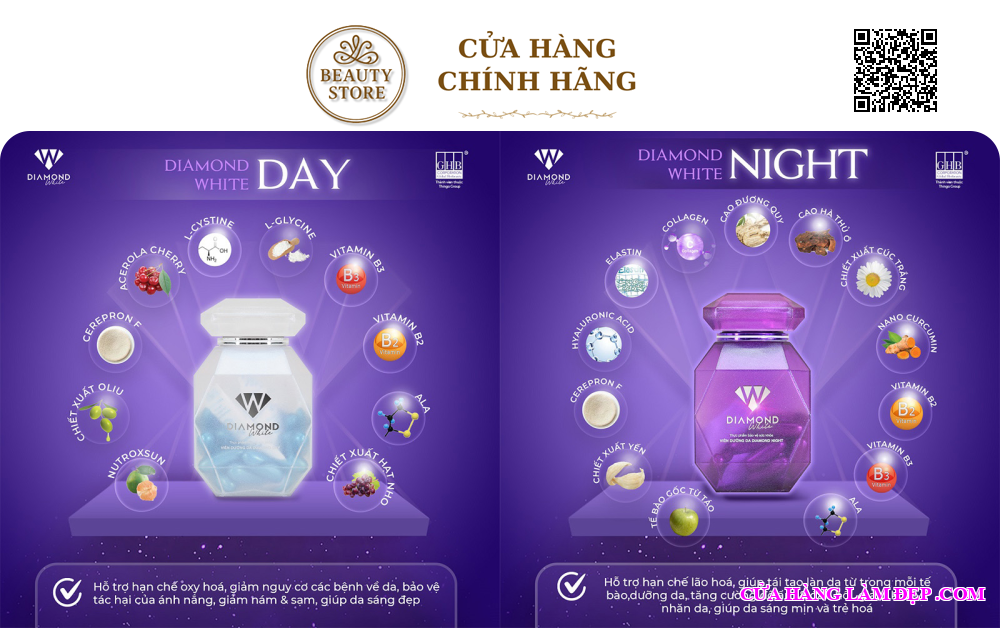 - Bạn có thể tìm mua Viên Uống Trắng Da Diamond White Day & Night qua website: cuahanglamdep.com