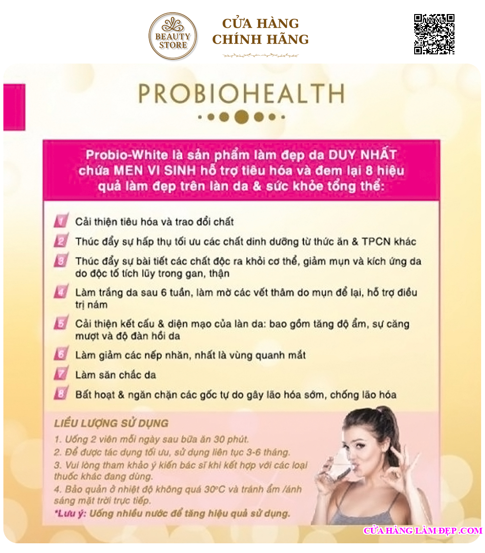 - Tại HCM bạn có thể tìm và mua sản phẩm Viên Uống Trắng Da Men Vi Sinh Probio White qua website: cuahanglamdep.com hoặc đến trực tiếp: