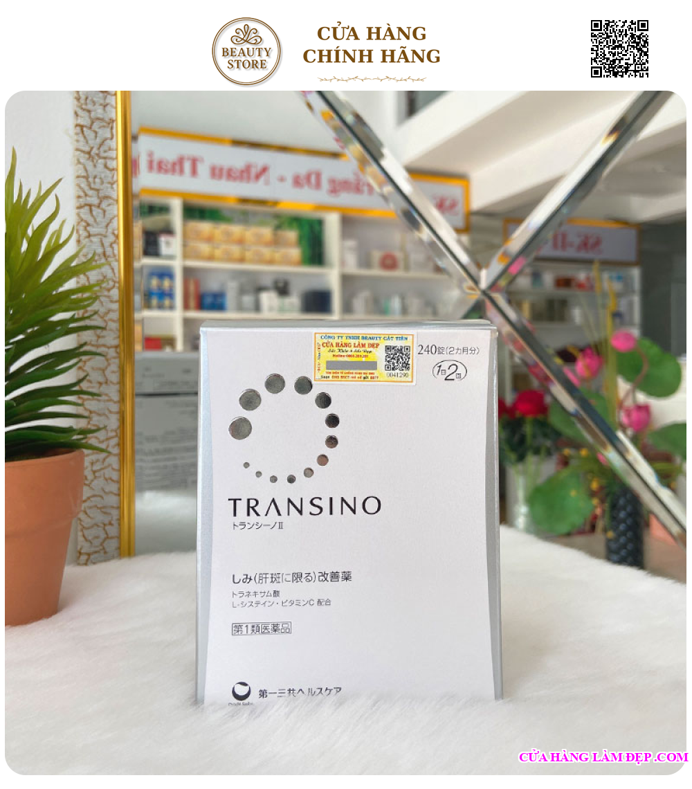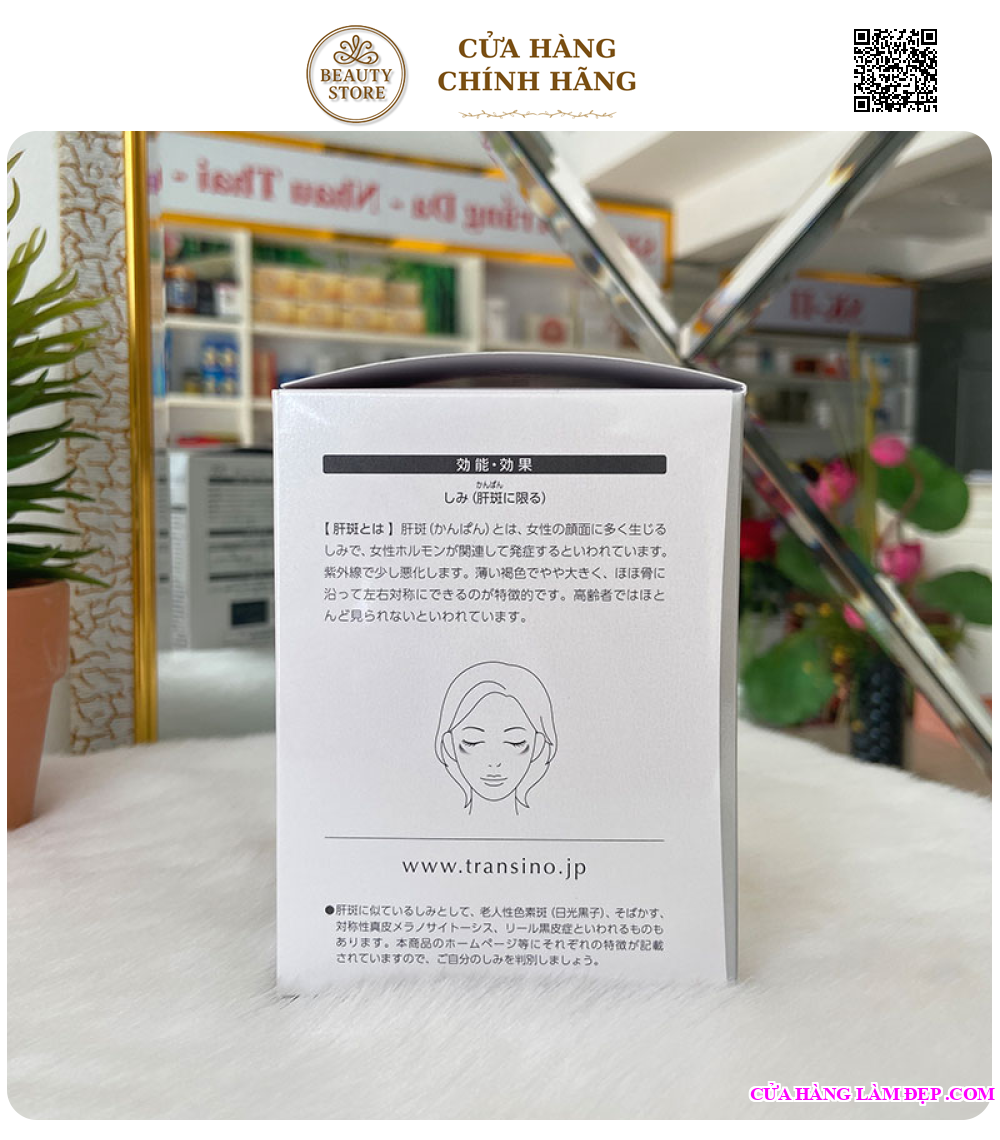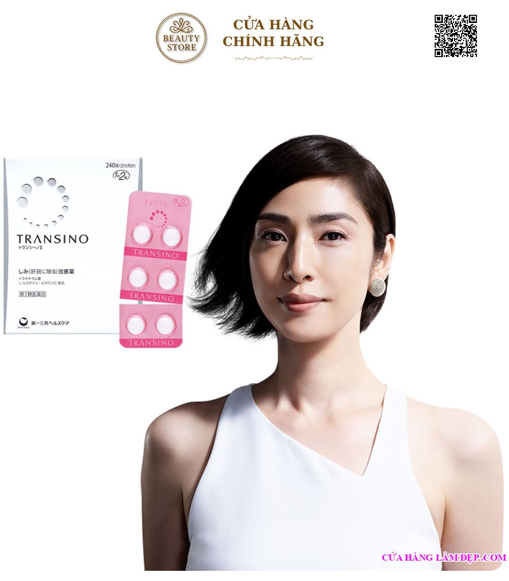 - Transino là một trong những nhãn hiệu làm trắng da tốt nhất của Nhật, cực kỳ hiệu quả trong việc làm trắng và loại bỏ các vết nám, vết thâm, tàn nhang, đồi mồi, chàm.