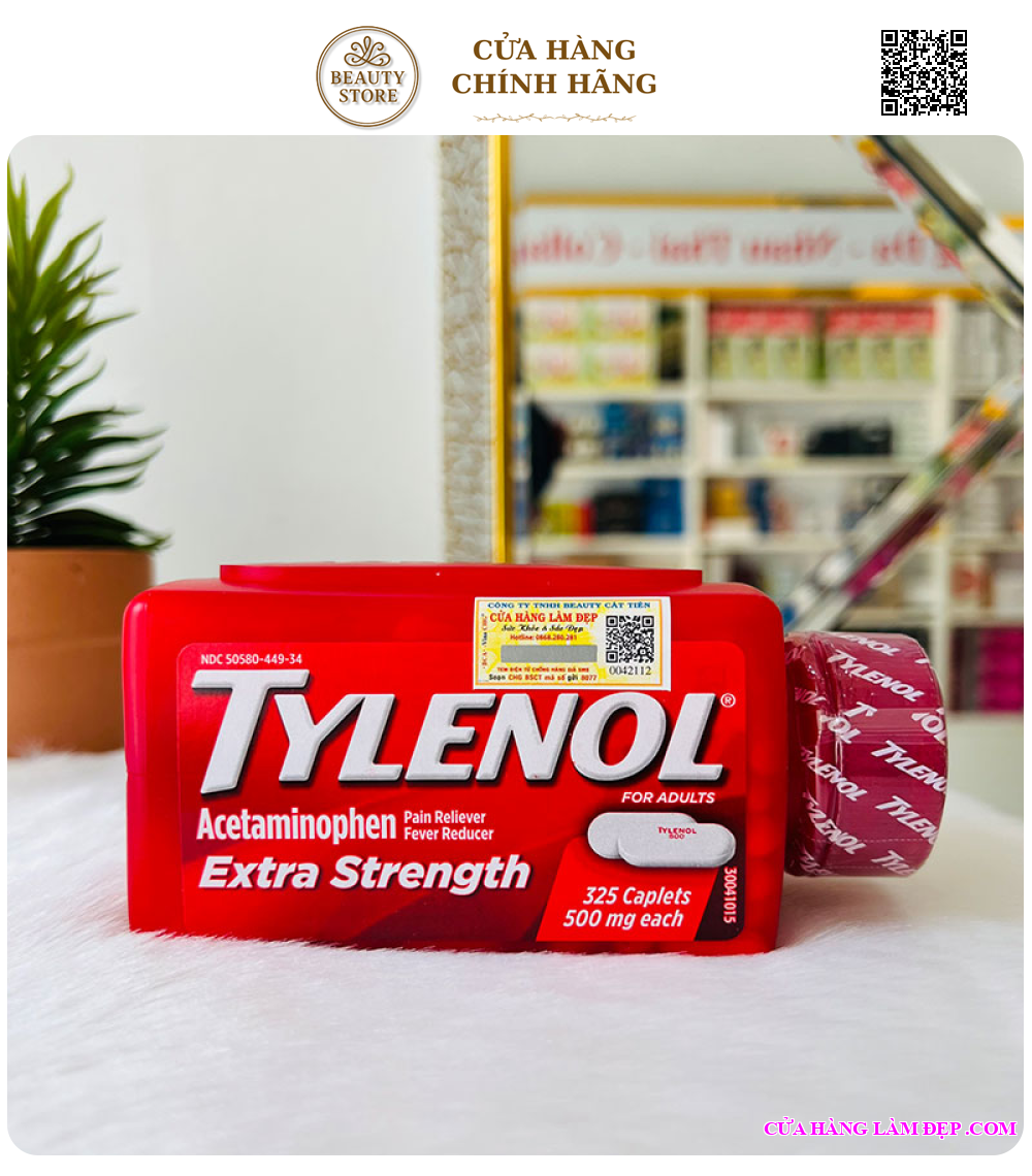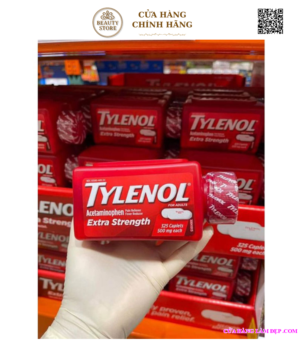 - Tylenol Extra Strength là được chuyên gia khuyên dùng. Sản phẩm được sản xuất tại Mỹ được thiết kế cho người lớn có tác dụng nhức và giúp . Thành phần Acetaminophen hàm lượng 500mg đạt chuẩn, hiệu quả trong khi đó không gây nhiều tác dụng phụ khi sử dụng.