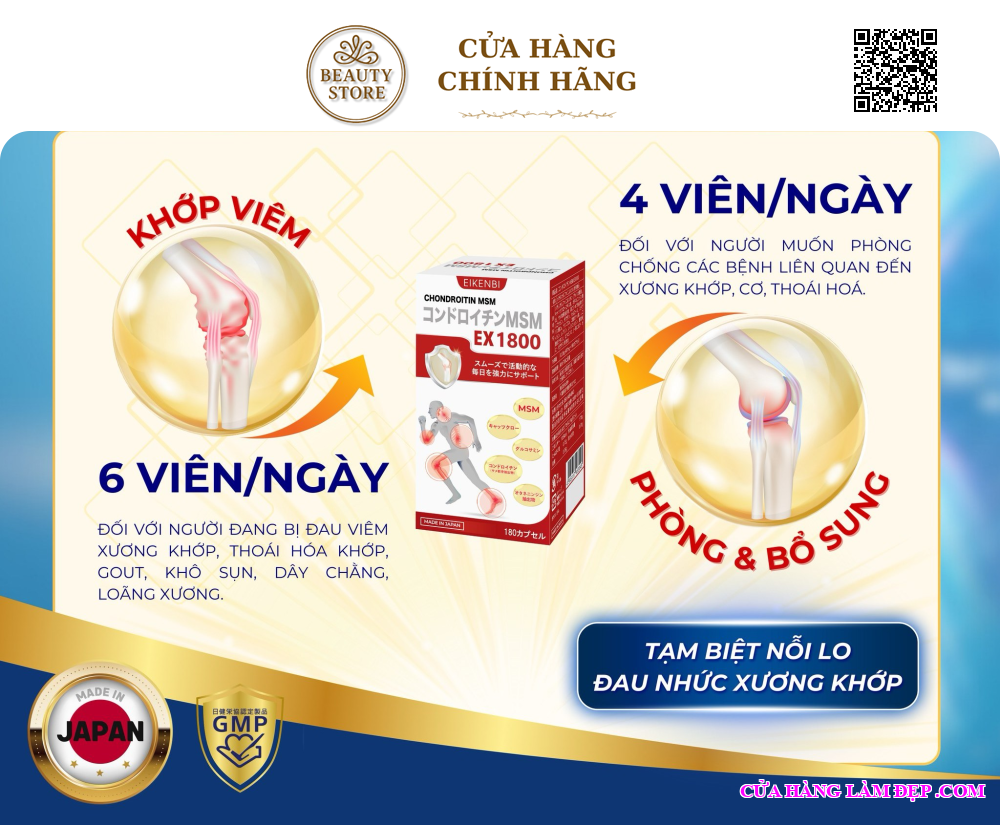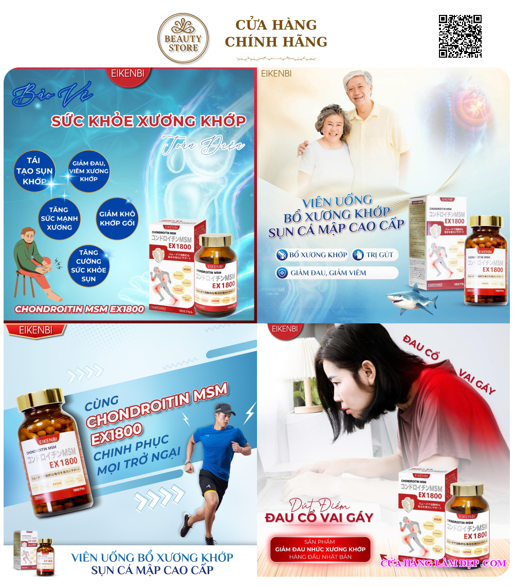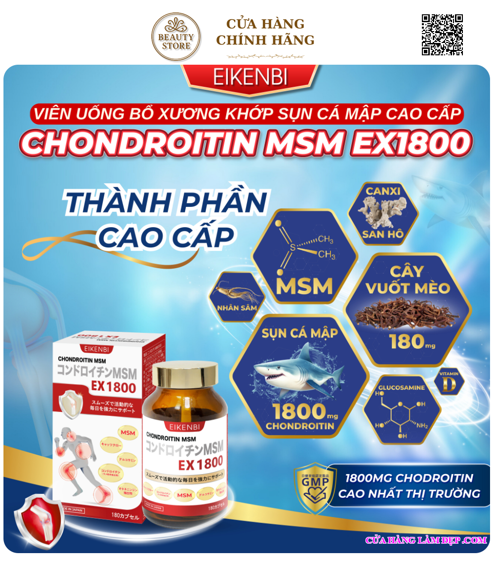 Giới thiệu Viên Uống Xương Khớp Sụn Cá Mập Chondroitin MSM Ex1800 Eikenbi:
