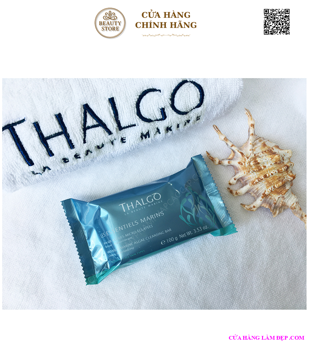 - Xà phòng tảo biển Marine Algae Cleansing Bar đến từ thương hiệu Pháp Thalgo chính là giải pháp thanh sạch da tối ưu, hỗ trợ kháng khuẩn, kháng viêm giúp nàng triệt tiêu mụn lưng một cách nhanh chóng. Đặc biệt, thành phần Vi Tảo Nổ công nghệ riêng biệt của Thalgo sẽ giúp thải độc tố, điều tiết nhờn, bổ sung khoáng chất và giải tỏa stress cho làn da khỏe mạnh, đầy sức sống.
