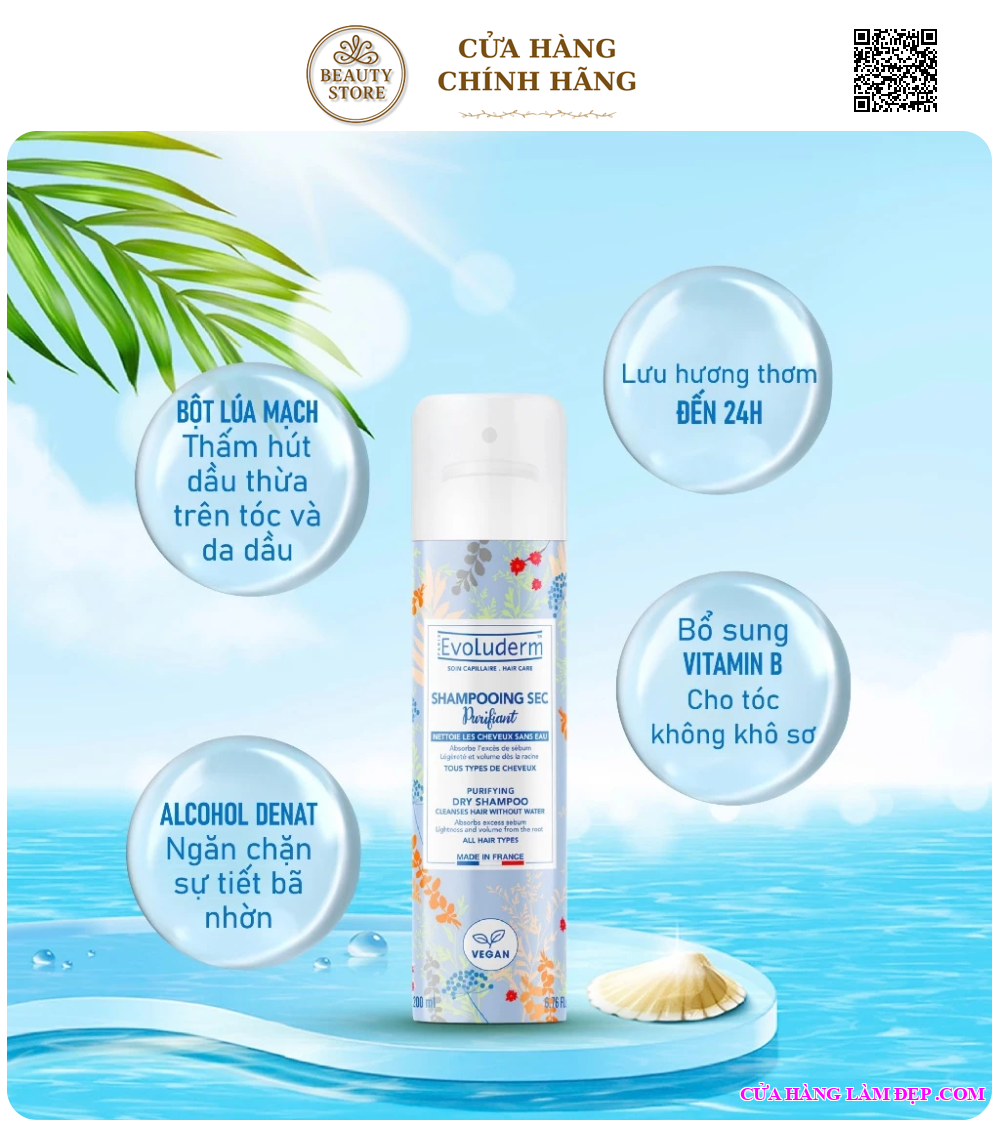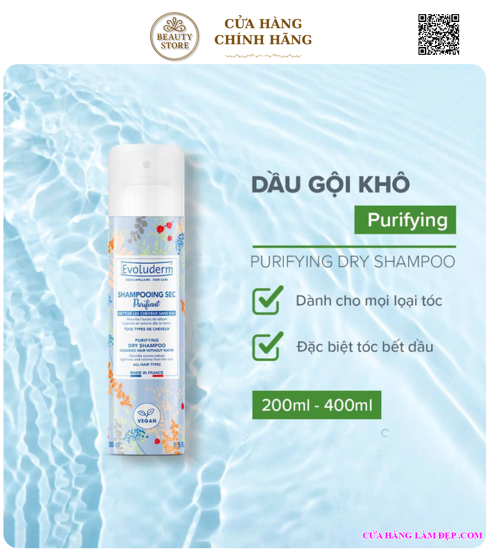 Tại hệ thống Cửa Hàng Làm Đẹp, sản phẩm Evoluderm Shampooing Sec Purifiant Xịt Gội Khô 200ml từ Pháp có giá 215.000 VNĐ
