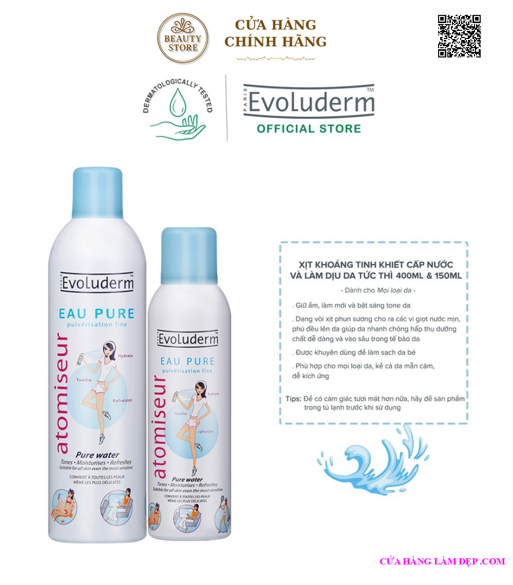 Tại hệ thống Cửa Hàng Làm Đẹp, sản phẩm Evoluderm Xịt Khoáng Cấp Nước & Làm Dịu Da 400ml có giá 295.000 VNĐ