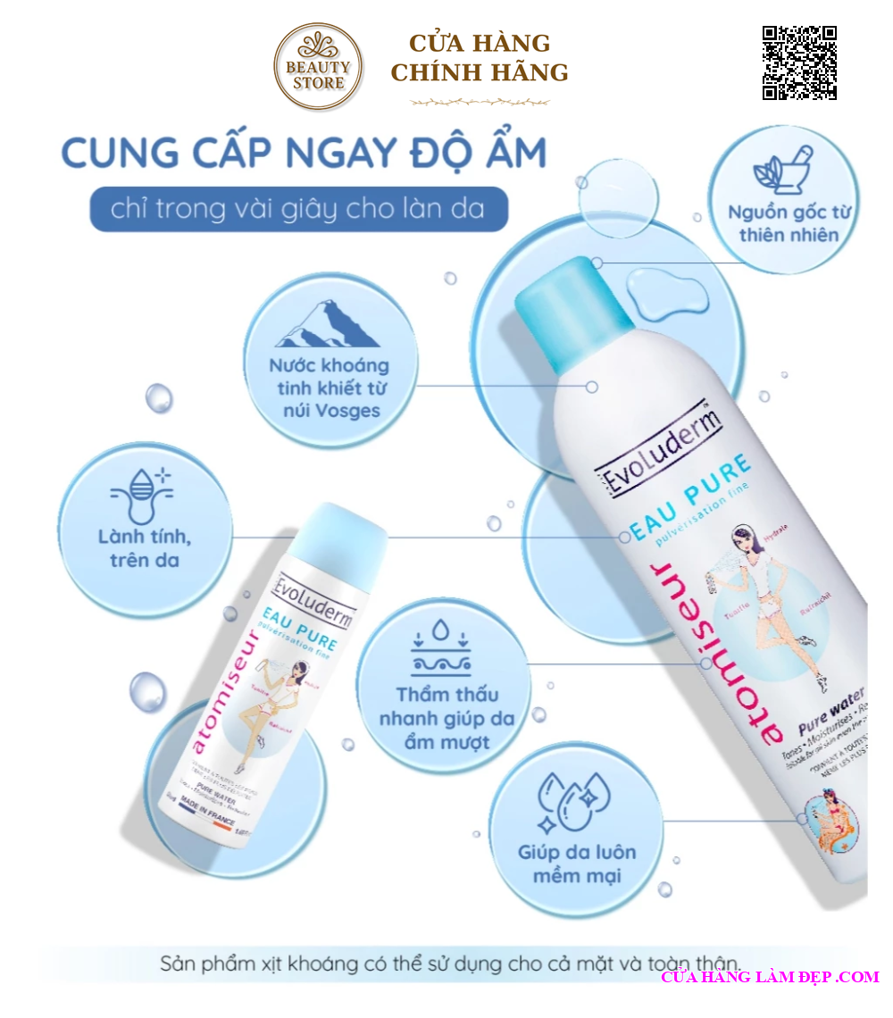 Địa chỉ mua Xịt Khoáng Evoluderm Cấp Nước & Làm Dịu Da 400ml từ Pháp chính hãng tại Hà Nội :