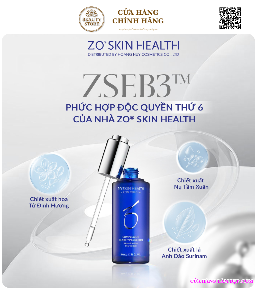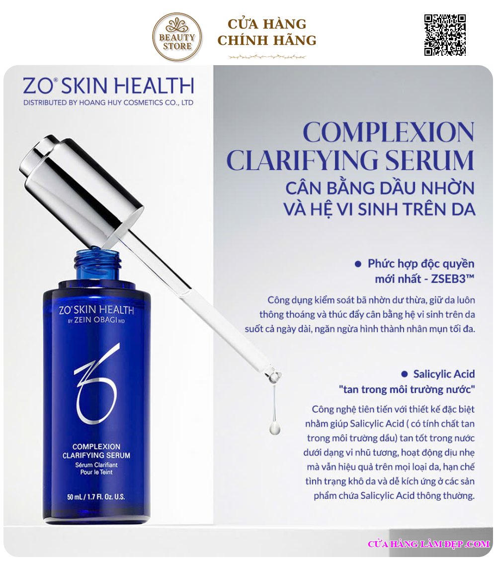 Complexion Clarifying Serum là serum gốc nước cao cấp đến từ thương hiệu dược mỹ phẩm ZO® Skin Health (Mỹ), được thiết kế với công nghệ độc quyền Z-SEB³™.